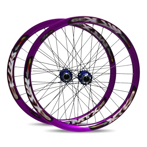 LYYCX AuroraXQ Paire de Roues VTT 26/27,5/29 Pouces, Roues de Vélo de Montagne Double Mur Alliage Frein à Disque 32H Roue de Vélo HG Hub Convient Aux pneus 7-12S et 1,25"-2,25"(Violet,26")