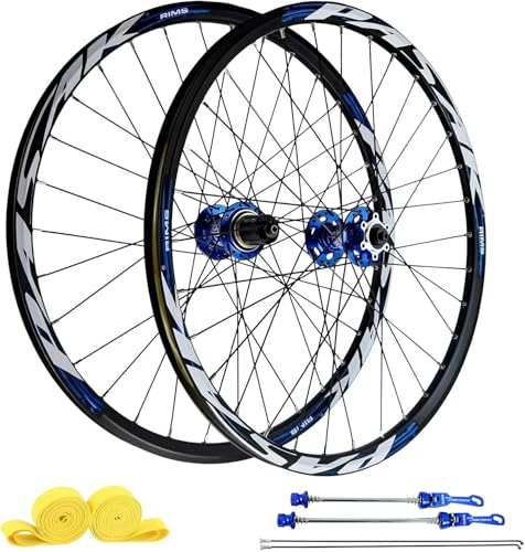 LYYCX AuroraXQ Paire de Roues VTT 26/27,5/29 Pouces, Roues de Vélo de Montagne Double Mur Alliage Frein à Disque 32H Roue de Vélo HG Hub Convient Aux pneus 7-12S et 1,25"-2,25"(Bleu,26")