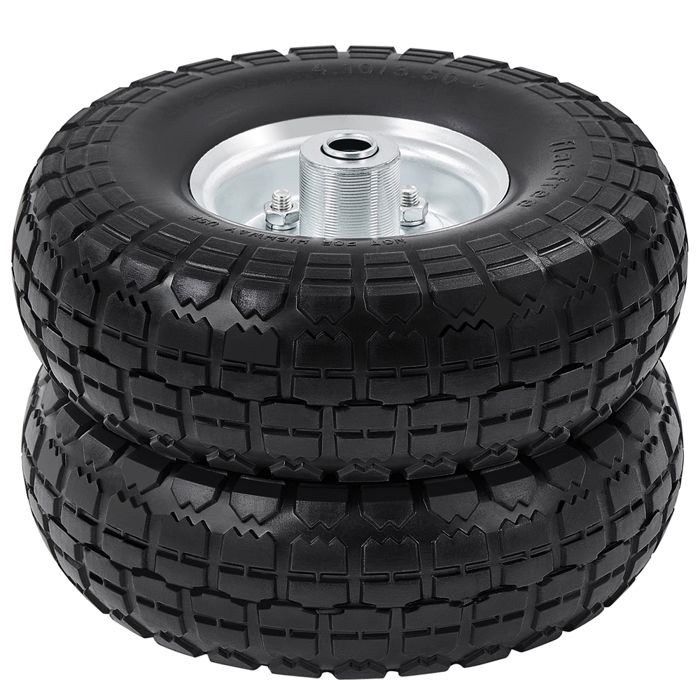 Lot de 4 roues de brouette 3.00-4 complète à air jante en acier pour essieu de 16 mm 100kg noir/gris
