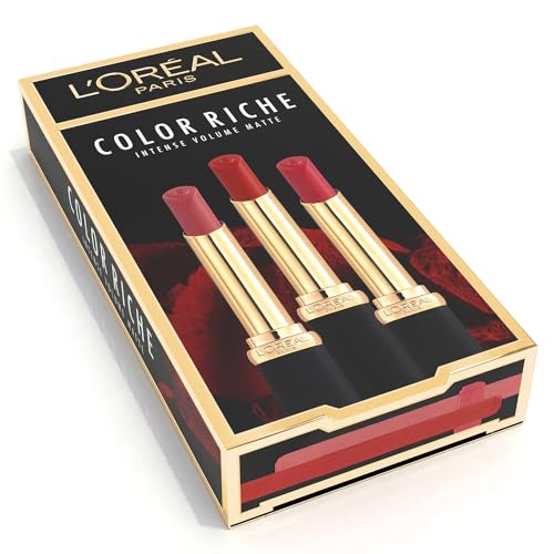 L’Oréal Paris - Coffret 3 Rouges à Lèvres - Mat et repulpant - Color Riche - Teintes : Nude Independant (640), Rouge détermination (346), Rose Activist (188)