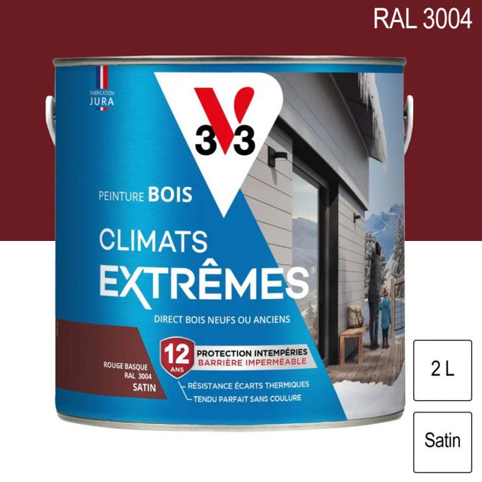 Peinture bois extérieur Climats Extrêmes RAL 3004 Rouge basque satin 2L V33