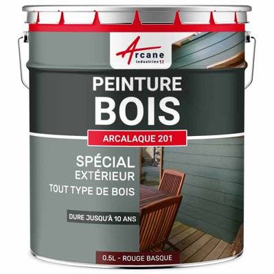 Arcane Industries Peinture Bois Extérieur : volets, portails, abri et mobilier de jardin ARCALAQUE 201-0.5 L Rouge basque - Proche RAL 3011