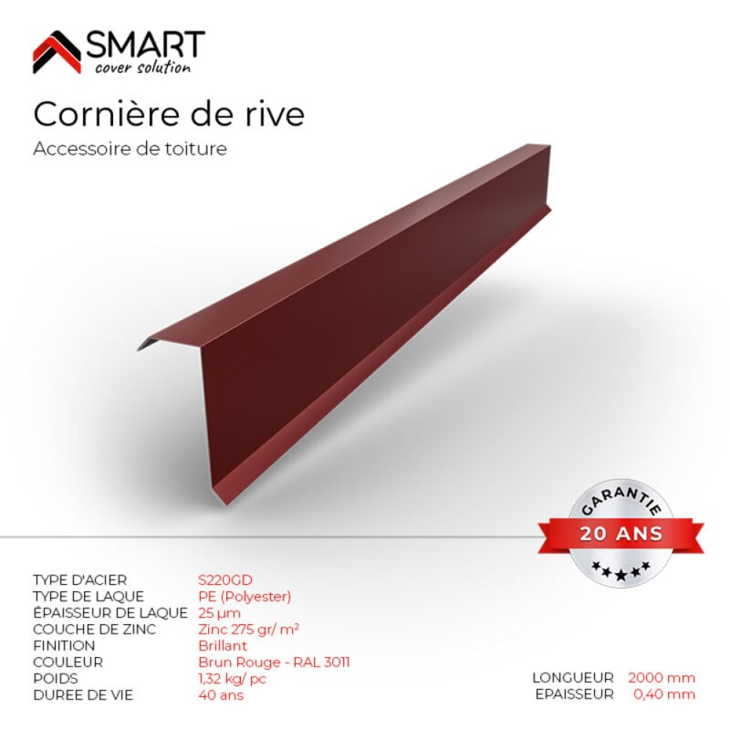 Bravo The Smart Solution - Cornière de rive - bac acier - tôle de couverture - Toiture - H12 Brun Rouge ral 3011 L=2m
