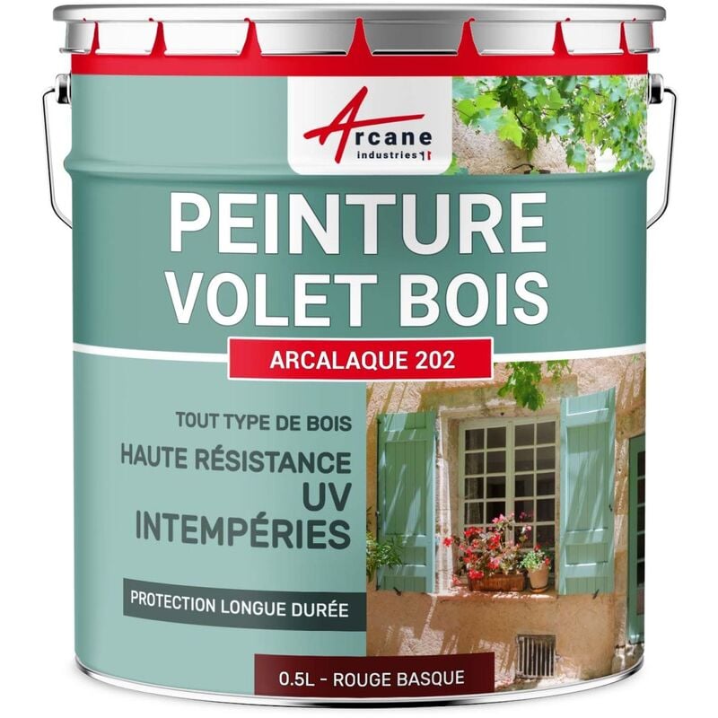 Arcane Industries - Peinture volet en bois, extérieur, couleur - 0.5 l Rouge basque - Proche ral 3011