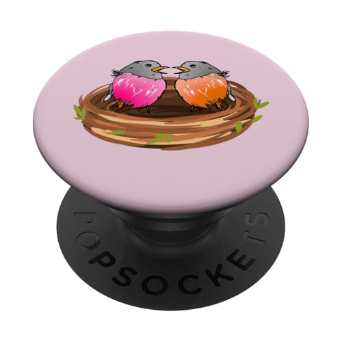 Adorable bébé Oiseau dans Un nid d'oiseaux Rouge-Gorge Amoureux des Oiseaux Observation des Oiseaux PopSockets PopGrip Adhésif
