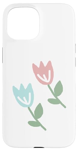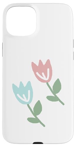 Dessin de Deux Tulipes printanières Bleu Pastel Rouge Coque pour iPhone 15 Plus