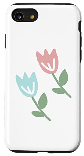 Dessin de Deux Tulipes printanières Bleu Pastel Rouge Coque pour iPhone SE (2020) / 7/8