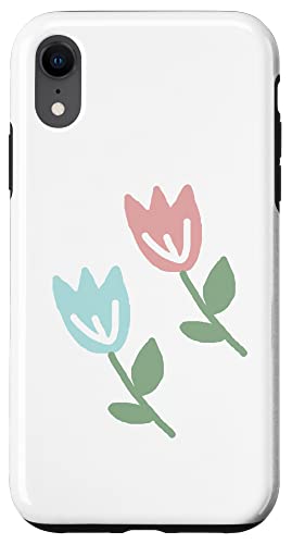 Dessin de Deux Tulipes printanières Bleu Pastel Rouge Coque pour iPhone XR