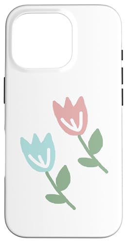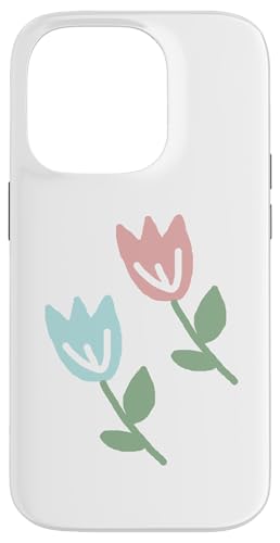 Dessin de Deux Tulipes printanières Bleu Pastel Rouge Coque pour iPhone 16 Pro