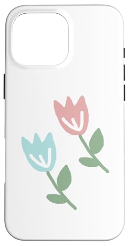 Dessin de Deux Tulipes printanières Bleu Pastel Rouge Coque pour iPhone 16 Pro Max