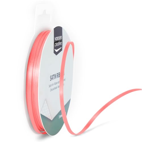 Vaessen Creative Ruban Satin - Rouge Pastel - 100 m x 3 mm - Bolduc - Biais de Couture - pour Cadeau, Emballage, Bouquet Mariage, Cheveux et Ballon