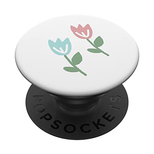 Dessin de Deux Tulipes printanières Bleu Pastel Rouge PopSockets PopGrip Adhésif