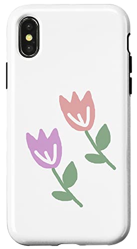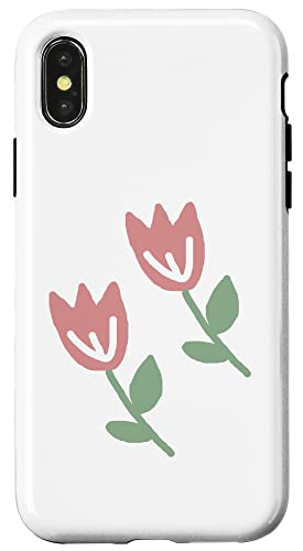 Deux Tulipes Printemps Pastel Rouge Fleur Dessin Coque pour iPhone X/XS