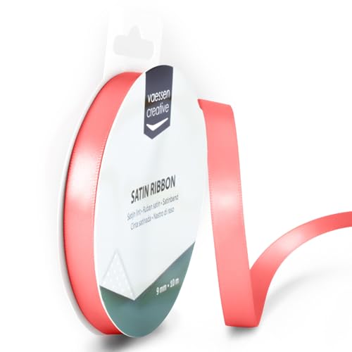 Vaessen Creative Ruban Satin - Rouge Pastel - 100 m x 9 mm - Bolduc - Biais de Couture - pour Cadeau, Emballage, Bouquet Mariage, Cheveux et Ballon