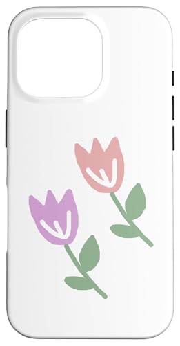 Dessin de Deux Tulipes printanières Pastel Rouge Violet Coque pour iPhone 16 Pro