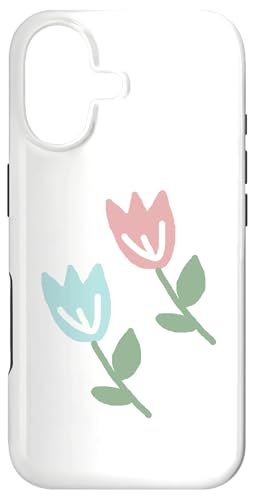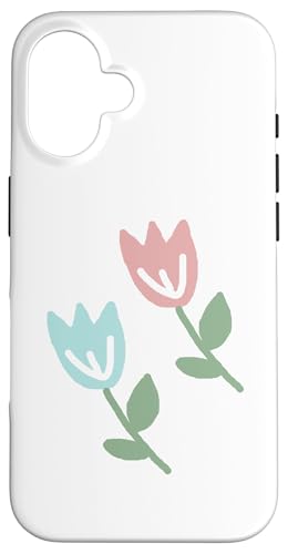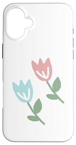 Dessin de Deux Tulipes printanières Bleu Pastel Rouge Coque pour iPhone 16 Plus
