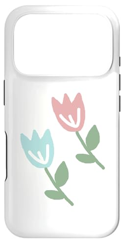 Dessin de Deux Tulipes printanières Bleu Pastel Rouge Coque pour iPhone 17 Pro