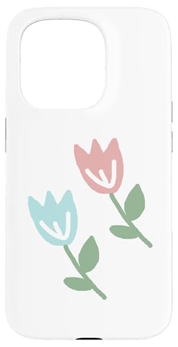 Dessin de Deux Tulipes printanières Bleu Pastel Rouge Coque pour iPhone 15 Pro