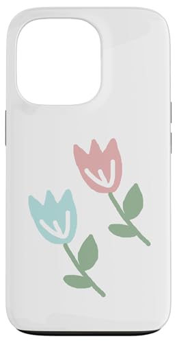 Dessin de Deux Tulipes printanières Bleu Pastel Rouge Coque pour iPhone 13 Pro