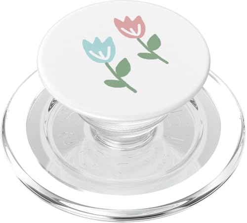 Dessin de Deux Tulipes printanières Bleu Pastel Rouge PopSockets PopGrip pour MagSafe