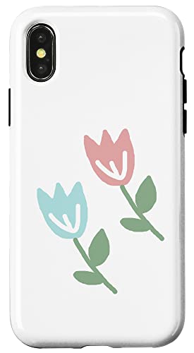 Dessin de Deux Tulipes printanières Bleu Pastel Rouge Coque pour iPhone X/XS