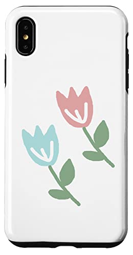 Dessin de Deux Tulipes printanières Bleu Pastel Rouge Coque pour iPhone XS Max