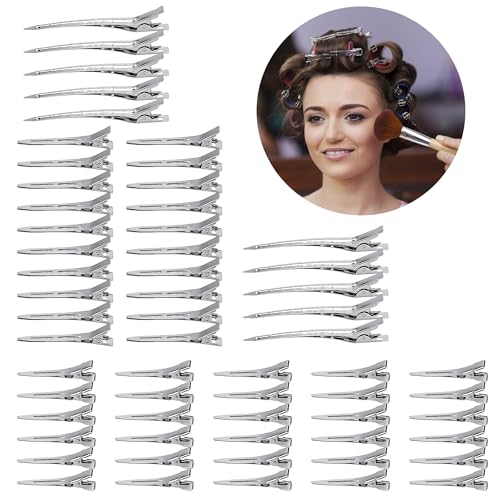 OOTDAY Pinces à cheveux, crocodile en métal avec trous, pinces à cheveux à bec de canard, pinces à cheveux en métal argenté, pour rouleau à cheveux épais, Lot de 60