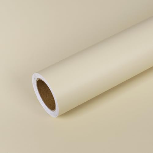 Livelynine Papier Adhesif pour Meuble Beige Mat 40CMx5M Rouleau Adhesif pour Meuble Cuisine Placard Table Papier Peint Adhésif Mural Beige Chambre Salon Vinyle Adhésif Creame Film Adhesive Meubles
