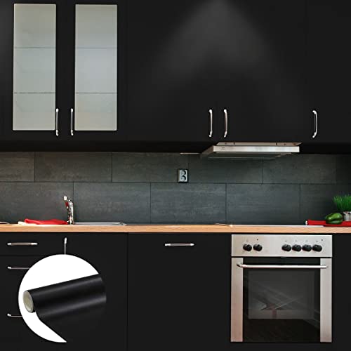 Papier Peint Adhesif Mural Decoratif Noir Mat, Papier Adhesif Pour Meuble Cuisine, 40x550 cm Film Autocollant Meuble, Rouleau Vinyle Adhésif Pour Cuisine Tables Armoires Mural