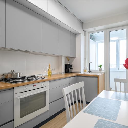 Papier Peint Adhesif Mural Decoratif Gris Mat, Papier Adhesif Pour Meuble Cuisine, 40x550 cm Film Autocollant Meuble, Rouleau Vinyle Adhésif Pour Cuisine Tables Armoires Mural