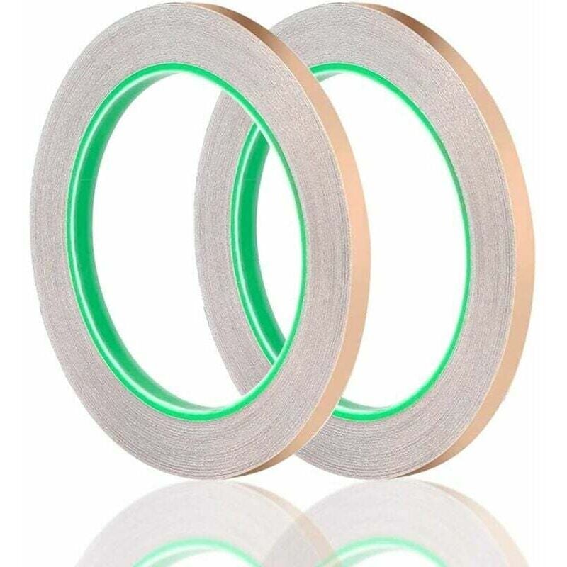 2 Rouleau Ruban Cuivre, 20m x 6mm Bande Cuivre anti Limaces Adhesif Cuivre Double Conducteur, Ruban Adhésif Décoratif Feuille de Cuivre pour Vitrail