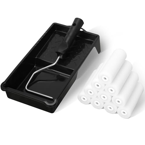 Cozary 11cm Rouleau Peinture - Kit de 12 Pièces avec Rouleaux Mousse Haute Densité, Manche et Bac à Peinture pour Finition Lisse sur Bois, Métal, Carrelage, Meubles et Surfaces Lisses