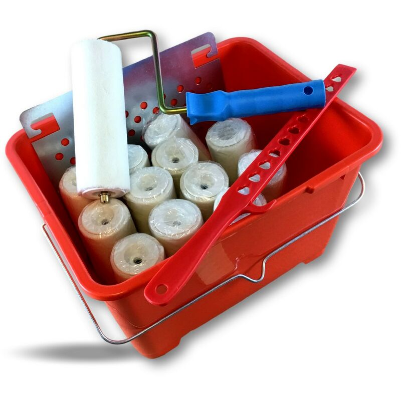 Kit peinture 13 rouleaux mousse ø 80180 mm Monture Seau Mélangeur Grille - Lot de 3 - Rouleau polyester poils longs