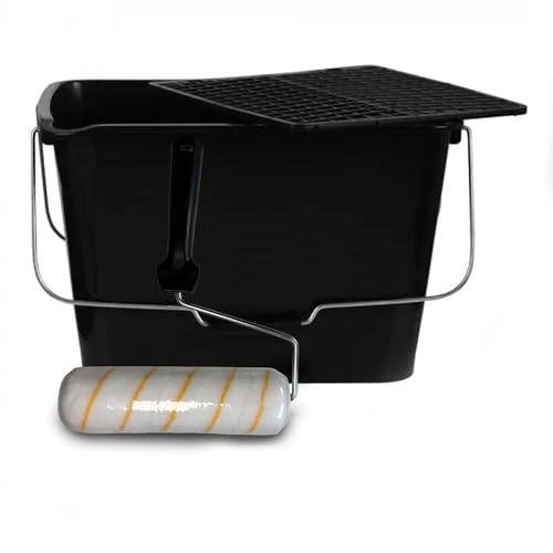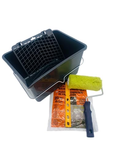 Nespoli Kit Rouleau de Peinture pour façades 18 cm, cuve 12 L avec Grille, Plastique Couvrant, mélangeur de Peinture, Set de Bricolage Complet