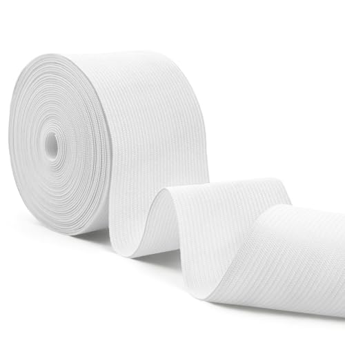 LABUYI 1 Rouleau Elastique Couture,Ruban Elastique,Bande Elastique Couture,Elastique Vetement Couture 50mm,pour Vêtements,Pantalons,Chapeaux,Gants,Chaussettes,Longueur 5M (Blanc)