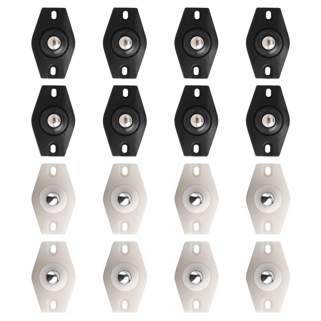 Hamiltion-16 Pièces Mini Roulette Auto-Adhésive, Roulettes Pivotantes Autocollantes, Roulettes En Plastique Pour Meubles, Roulettes De Boîte De Rangement Pour Poubelle,Deplace Meuble(Noir/Blanc)