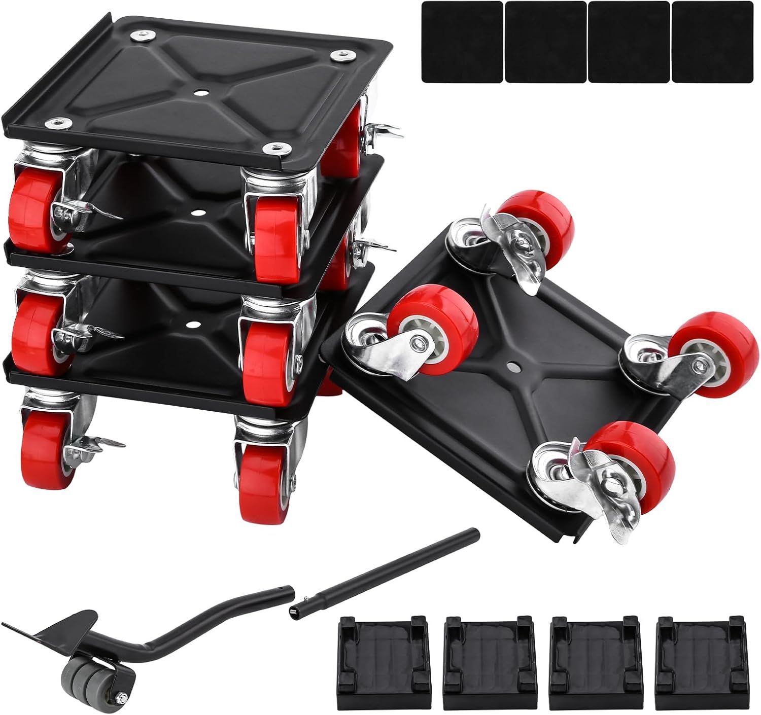 Kit de roulettes pour Meubles avec Deplace Leve Meuble Lourd sans Effort Roulette pour Chariot avec 5 Roues et Frein soulever Meuble Lourd Charge de 750 kg