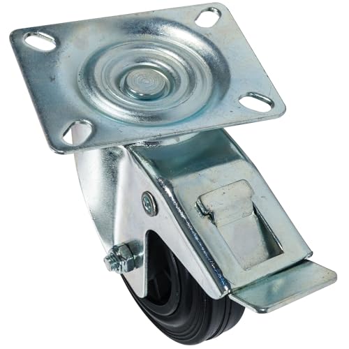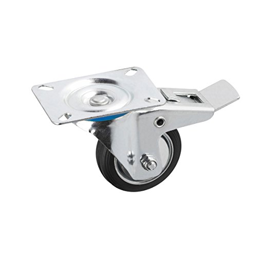 Metafranc 800750 Roulette pivotante Ø 100 mm – Frein – Plaque 60 x 60 mm – Roue en caoutchouc – Surface de roulement souple – Roulement coulissant – Charge maximale 75 kg/Roulette de transport /
