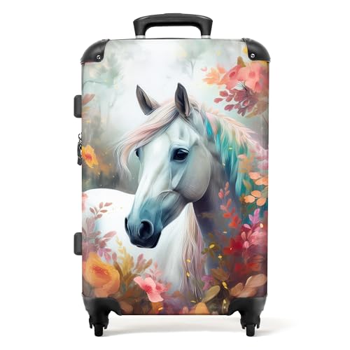 NoBoringSuitcases.com Valise Enfant, Grande Valise, Valise Enfant Fille, Valise Enfant Roulette, Valise Voyage, Suitcase, Valise Fille, Valise Grande Taille (67cm - 72L) (Cheval - Blanc)