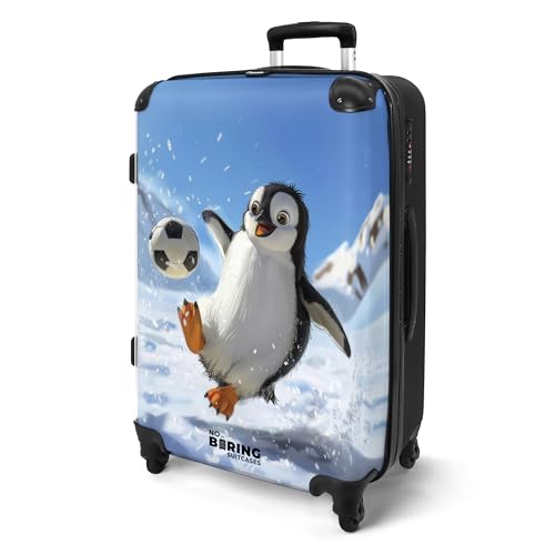 NoBoringSuitcases.com Valise Enfant, Grande Valise, Bagages Enfant, Valise Enfant Roulette, Serrure TSA, Valise 23kg, Valise Rigide, Taille M, Valise Grande Taille (67cm - 72L), (Pingouin - Gris)