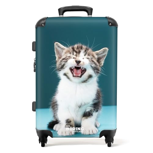 NoBoringSuitcases.com Valise Enfant, Grande Valise, Bagages Enfant, Valise Enfant Roulette, Serrure TSA, Valise 23kg, Valise Roulette Enfant, Valise Grande Taille (67cm - 72L), (Chaton - Bleu)