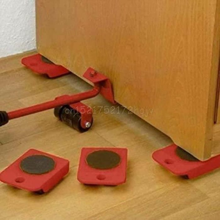 Relaxdays Kit de déplace Meuble Lourd, avec Levage et roulettes, jusqu'à 300 kg, 4 Embouts, Patins glisseurs, Noir/Rouge
