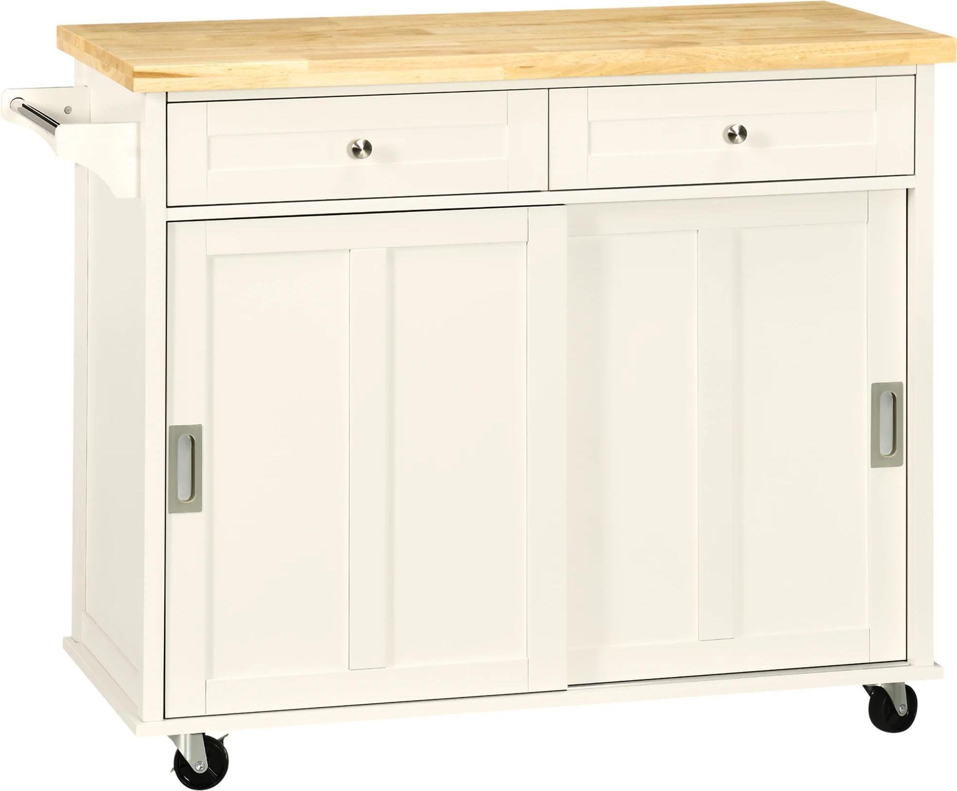 Chariot de cuisine - Chariot de service - Avec roulettes - 2 portes coulissantes - 2 tiroirs - Porte-serviettes - 110 x 49,5 x 89,5 cm - Ivoire