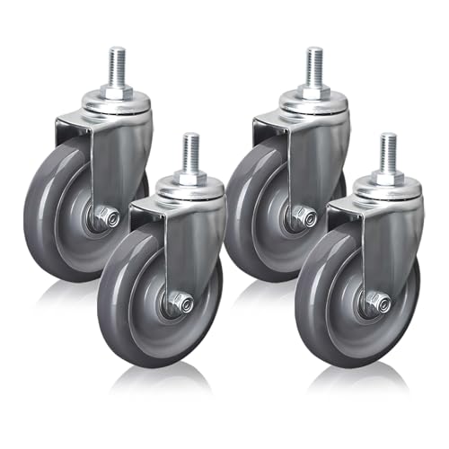Roulette Pivotante À Tige Filetée M12 Lot De 4, 63 75 100mm Roues Silencieuses En Polyuréthane, Roulettes De Transport Industriel Avec Frein, Pour Chariot À Main, Tables De Travail, Meuble(Swivel,100m