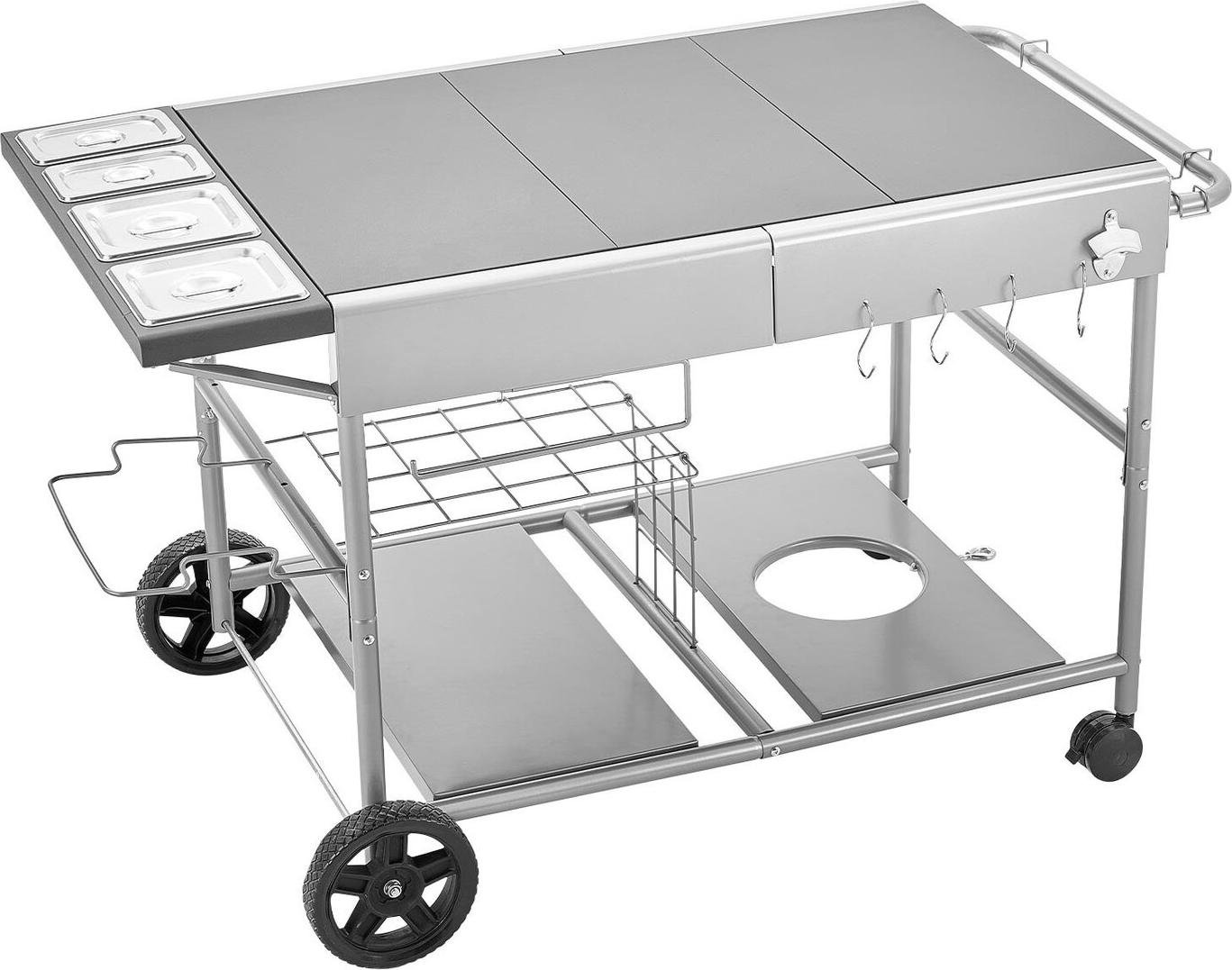 Chariot de barbecue d'extérieur, table de cuisson de 787 x 432 mm, table de cuisson d'extérieur pliable avec porte-serviettes, crochets, roulettes, table d'appoint, tables de préparation pour barbecue pour pique-nique, cuisine, cour