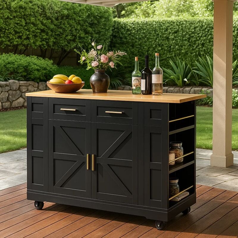 Urban Meuble - Tables d'extérieur chariot de cuisine noir scandinave extensible avec roulettes