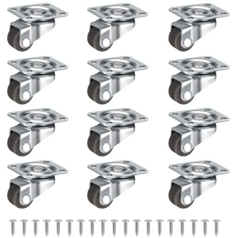 Vtizikl Lot de 12 roulettes pivotantes à 360° pour petits meubles (12 mm), silencieuses, avec vis, pour petits meubles, tables, armoires, chariots,