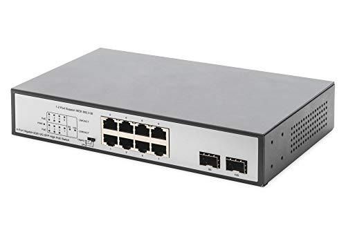 DIGITUS Routeur filaire L2 Managed Commutateur PoE Gigabit 8 Ports + 2 SFP 10/100/1000 Mbps, 86 W PoE Budget