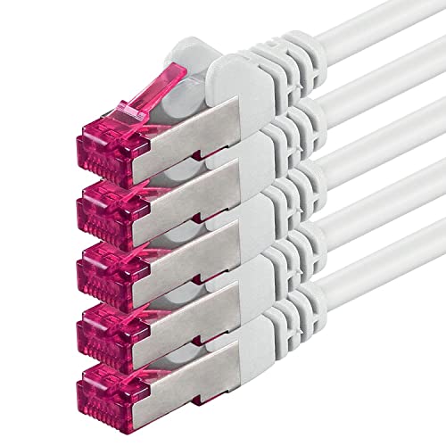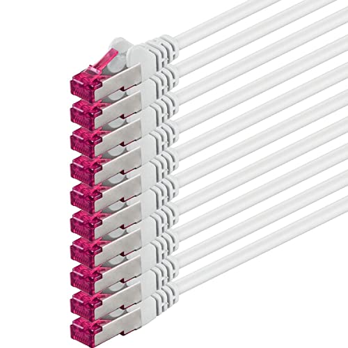 1aTTack.de 10m - blanc - 5 pièces - câble réseau CAT6a (10Gb/s) S-FTP CAT 6a Lankacable - certifié GHMT PIMF 500 MHz Cat5 Cat5e Cat6 Cat6a Cat7 pour switch, routeur, modem, Internet