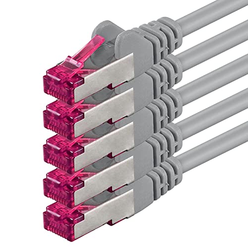 1aTTack.de 0,5 m - gris - 5 pièces - câble réseau CAT6a (10Gb/s) S-FTP CAT 6a Lankacable - certifié GHMT PIMF 500 MHz Cat5 Cat5e Cat6 Cat6a Cat7 pour switch, routeur, modem, Internet